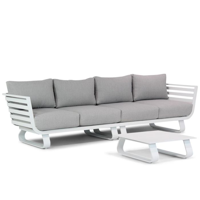 De Santika Sovita loungebank 3-delig is gemaakt van hoogwaardig aluminium. Dit materiaal heeft als grote voordelen dat het sterk en licht van gewicht is, en onderhoudsvrij is. Bovendien is het aluminium voorzien van een duurzame poedercoating. Deze coating wordt op hoge temperatuur aan het aluminium gehecht waardoor een sterke beschermlaag ontstaat. De loungeset kan het gehele jaar door buiten blijven staan. De goedgevulde kussens van de Santika Sovita zijn All Weather. Dit houdt in dat de kussens in het voorjaar en de zomer constant buiten kunnen blijven liggen in combinatie met een Outdoor Cover beschermhoes. De loungeset is eenvoudig schoon te maken met een mild sopje.